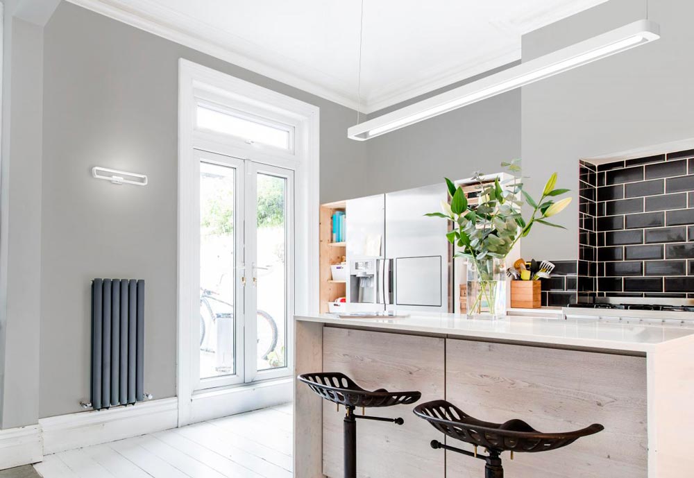 Collezione di lampade a parete, soffitto e terra con corpo in alluminio verniciato bianco opaco, diffusore in policarbonato satinato e fonte luminosa a LED. La collezione Stripe magneto ha un particolare sistema di fissaggio del corpo lampada alla staffa di supporto. Questo sistema semplifica e velocizza l’installazione.