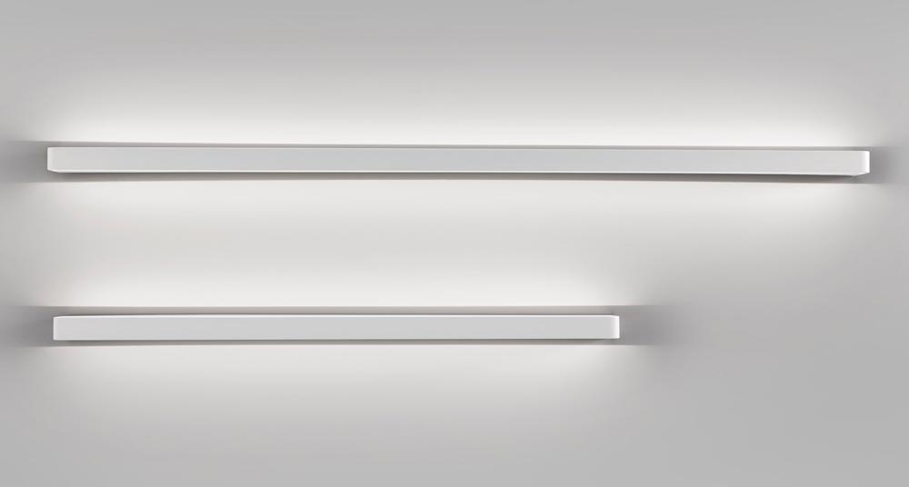Collezione di lampade a parete, soffitto e terra con corpo in alluminio verniciato bianco opaco, diffusore in policarbonato satinato e fonte luminosa a LED. La collezione Stripe magneto ha un particolare sistema di fissaggio del corpo lampada alla staffa di supporto. Questo sistema semplifica e velocizza l’installazione.
