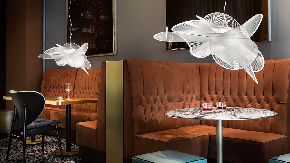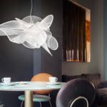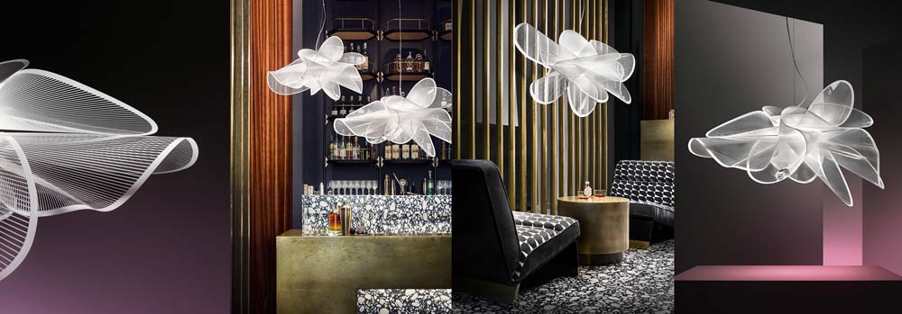 Dinamismo, eleganza e sensualità appartengono al linguaggio quotidiano di La Belle Étoile, la lampada a sospensione ispirata ai volteggi aggraziati di una ballerina, infrangibile, leggera, realizzata interamente a mano nell’atelier di Slamp. Dal dialogo tra tecnologia – la sorgente luminosa a LED è facilmente sostituibile tramite attacco magnetico – e ricerca stilistica – le superfici trasparenti sono arricchite di una texture bianca stampata-, nasce una lampada dal design contemporaneo – disponibile in due dimensioni e in una versione plafoniera/applique – ideale per chi desidera unire funzioni illuminotecniche avanguardistiche ed estetiche raffinate e glamour, che apportano bellezza e originalità anche alle mise in place più minimaliste. Protagonista indiscussa della scultura luminosa è la luce, la cui intensità può variare da 0 a 100 per assecondare completamente i desideri delle persone che la circondano.